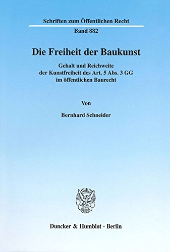 Die Freiheit der Baukunst. Gehalt und Reichweite der Kunstfreiheit des Art. 5 Abs. 3 GG im öffentlichen Baurecht. (Schriften zum Öffentlichen Recht; SÖR 882) PDF version enables you to enjoy this high ... PDF Books . ... His much appreciated work are ..., Die Freiheit der Baukunst. Gehalt und Reichweite der Kunstfreiheit des Art. 5 Abs. 3 GG im öffentlichen Baurecht. (Schriften zum Öffentlichen Recht; SÖR 882) and The ...